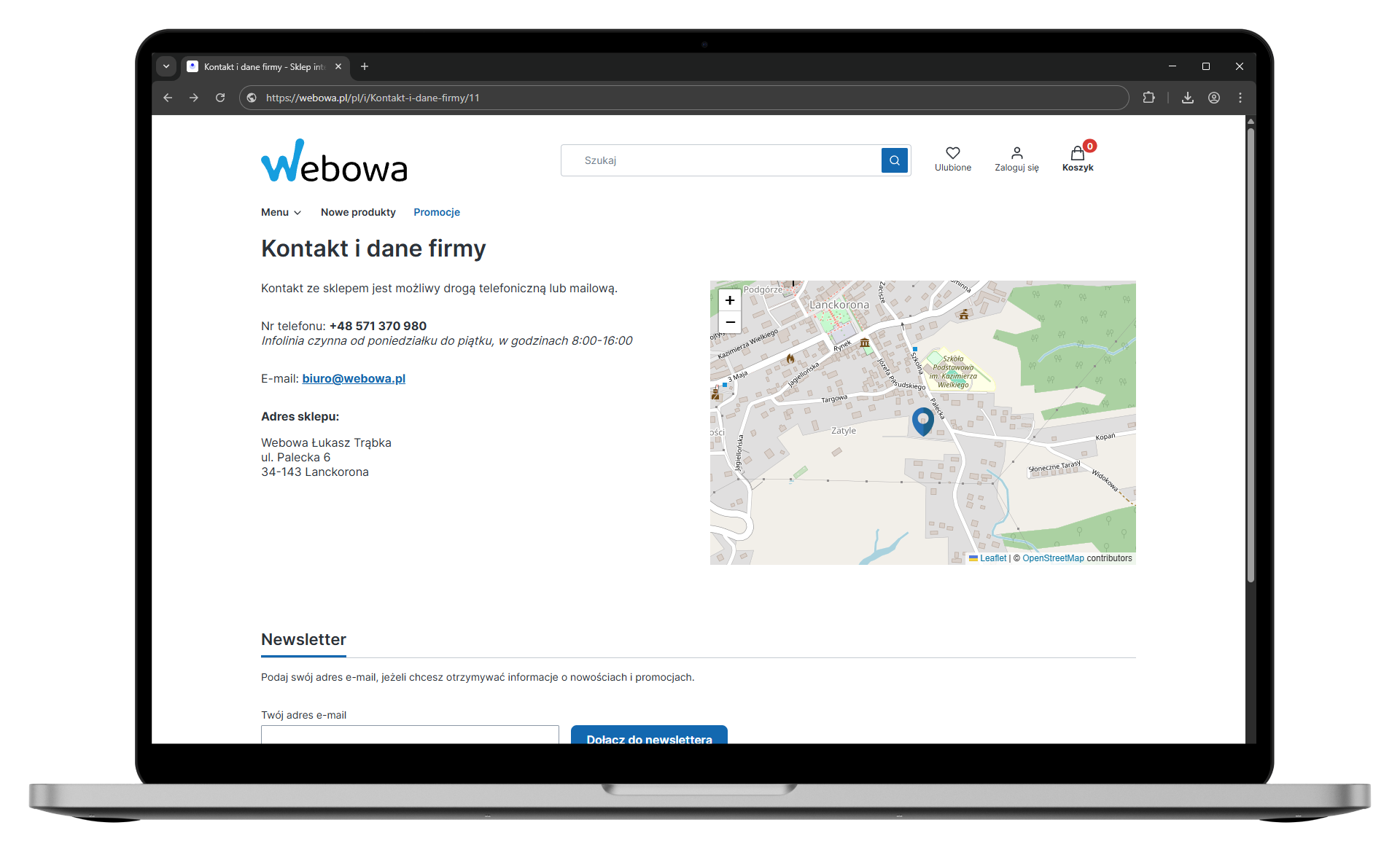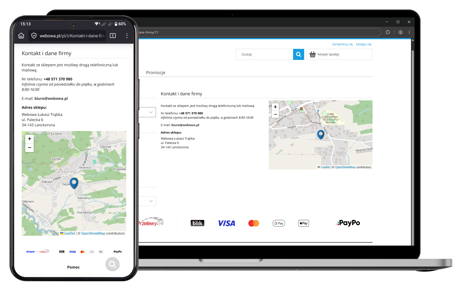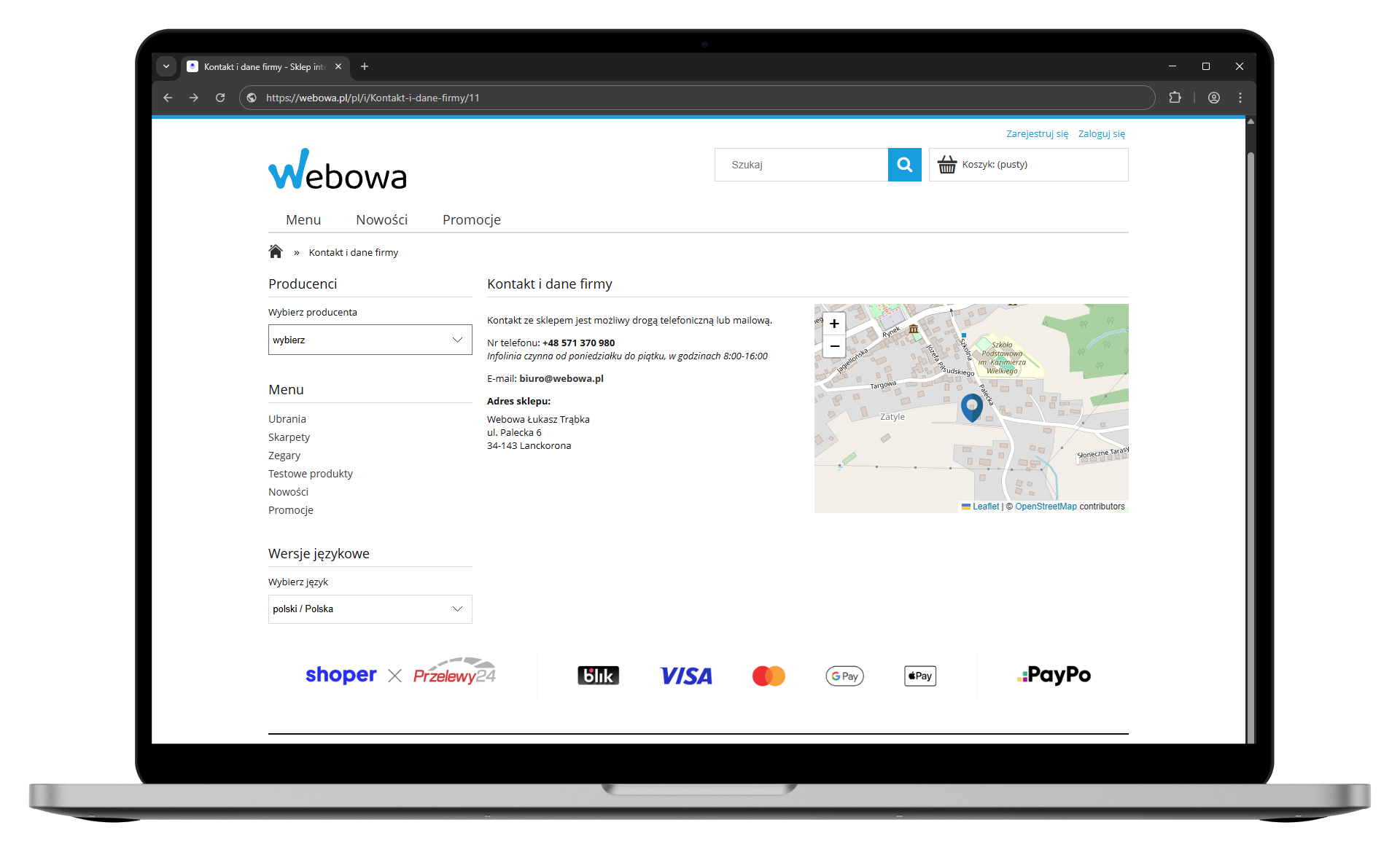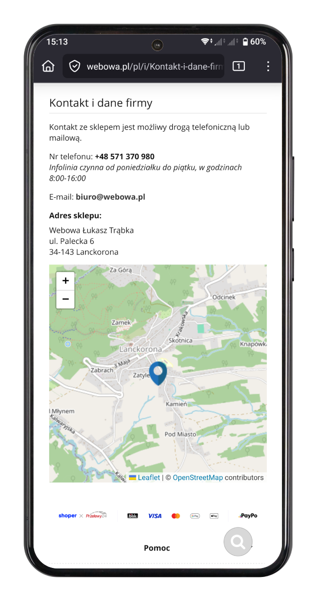 Dodaj interaktywną mapę z lokalizacją twojego sklepu stacjonarnego. Dzięki temu twoi klienci łatwo i szybko cię znajdą.