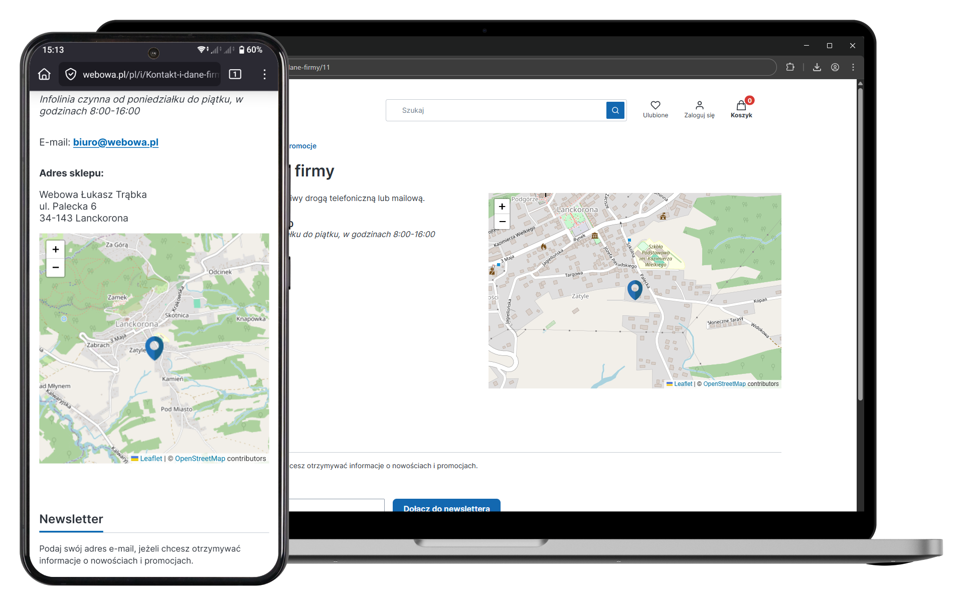 Dzięki temu mapa nie tylko pełni funkcję informacyjną, ale też estetycznie uzupełnia stronę kontaktową lub stopkę sklepu.