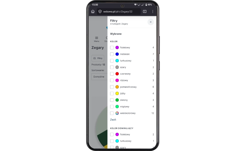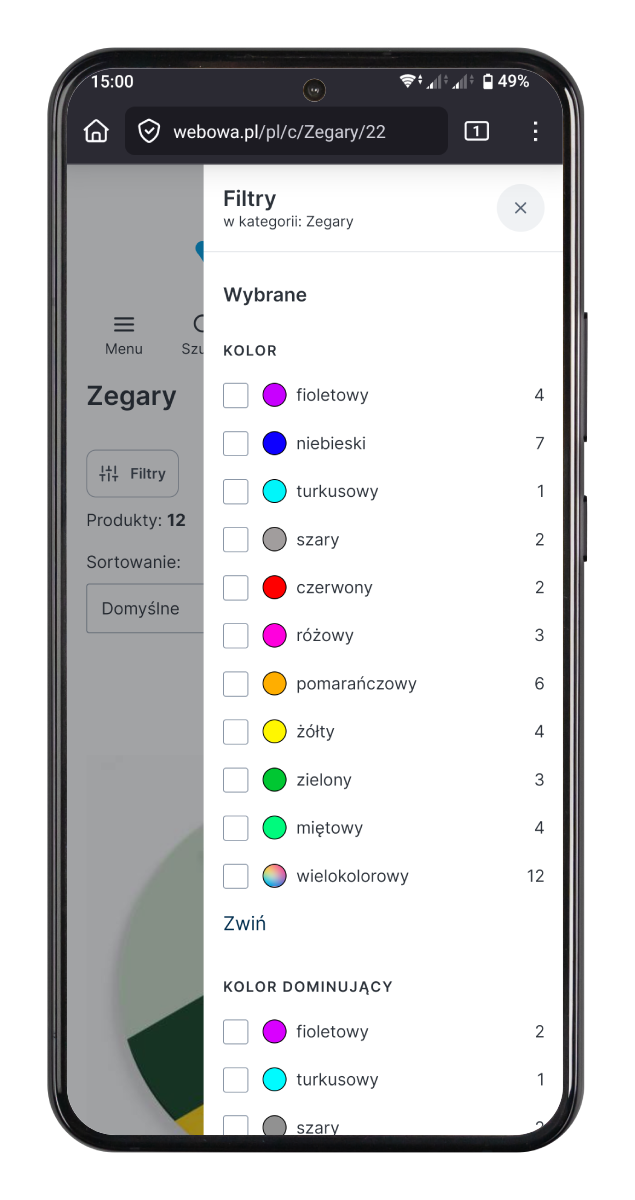 Pomóż twoim klientom szybko znaleźć to, czego potrzebują. Aplikacja pozwoli im w łatwy sposób filtrować produkty po kolorach.