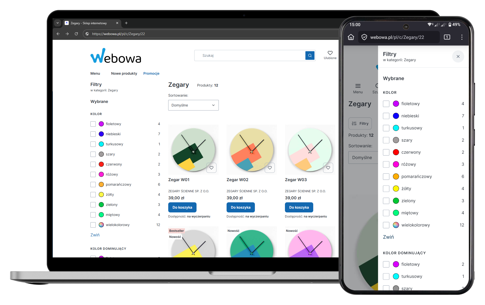 Kolorowe atrybuty prezentują się znacznie atrakcyjniej niż zwykłe listy tekstowe. Dzięki temu sklep zyskuje nowoczesny i profesjonalny wygląd, a filtry stają się elementem spójnym z identyfikacją wizualną marki.