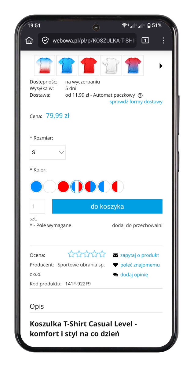 Wyraźne, wizualne przedstawienie wariantów kolorystycznych sprawia, że klienci szybciej podejmują decyzje zakupowe i chętniej wracają do twojego sklepu. Atrakcyjny wygląd strony produktowej wpływa też na lepsze postrzeganie marki i profesjonalizm sklepu.