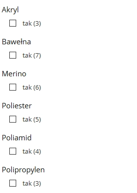 Dodaj cechy (np. akryl, bawełna, merino).