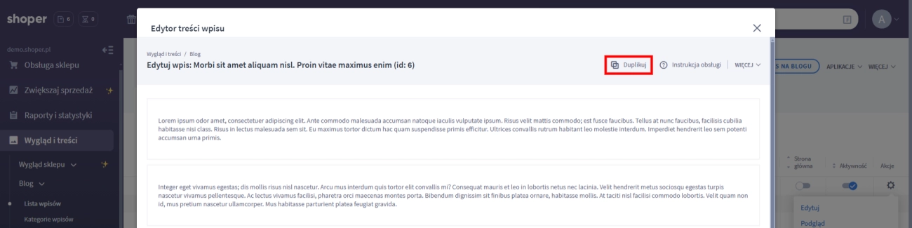 - Odszukaj wpis bloga, którego treść chcesz zduplikować.