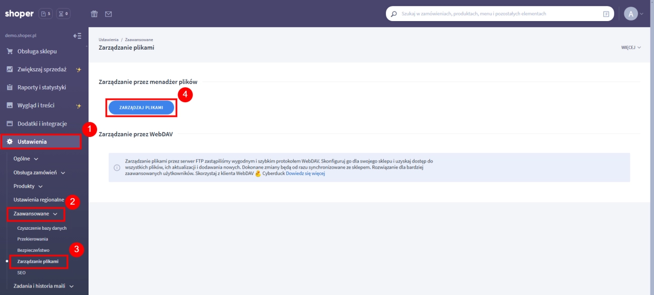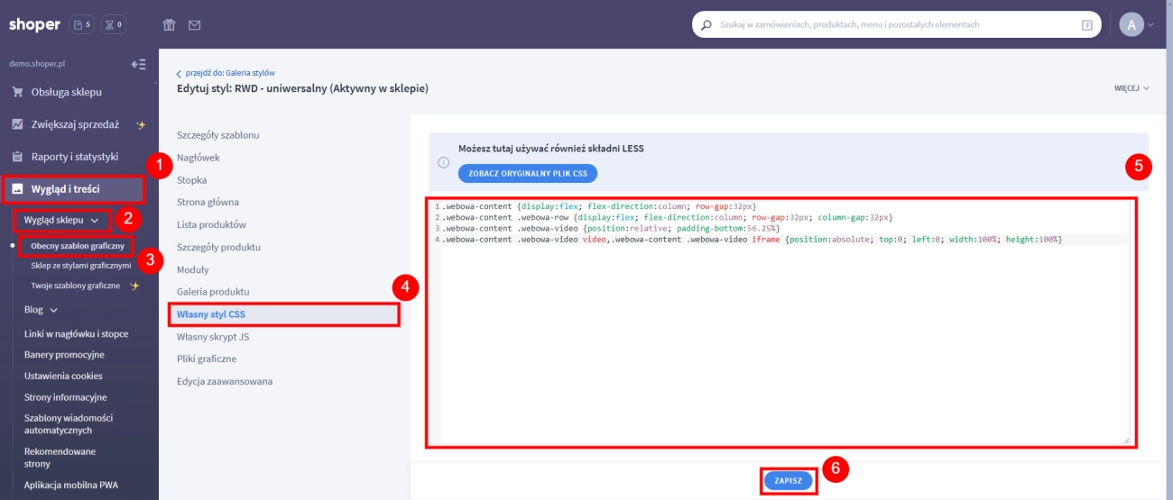 - Przejdź do Wygląd i treści → Wygląd sklepu → Obecny szablon graficzny.
