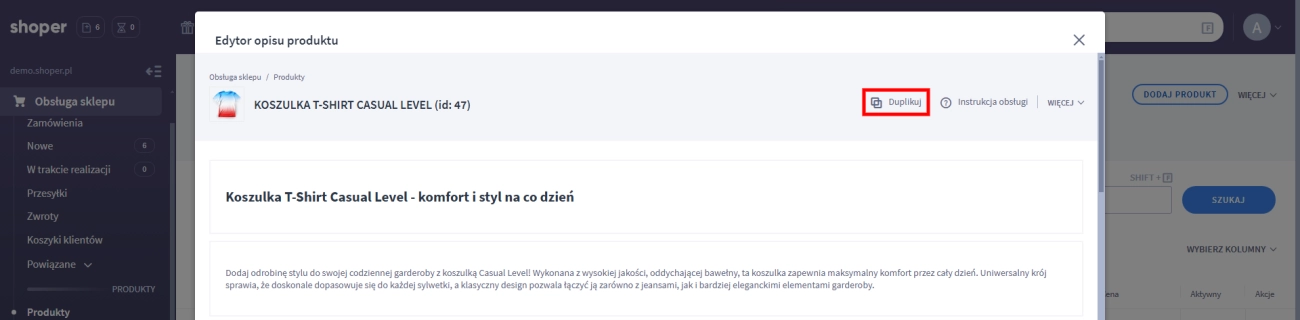 - Odszukaj produkt, którego opis chcesz zduplikować.
