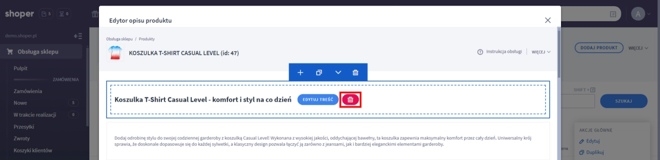 - Odszukaj produkt, dla którego chcesz wprowadzić opis.