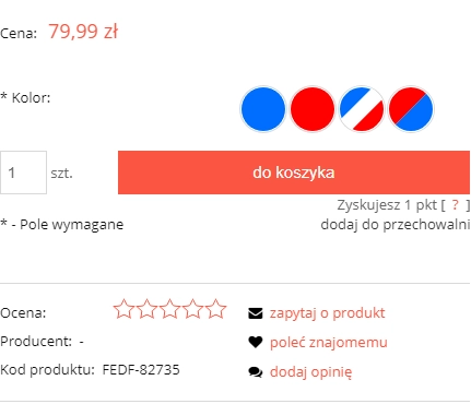Po wyłączeniu lub odinstalowaniu aplikacji wygląd wyboru koloru wariantu na karcie produktu zostanie przywrócony do stanu przed instalacją a wielokolorowe warianty produktów będą prezentowane w formie kafelków bez ustawionych kolorów.