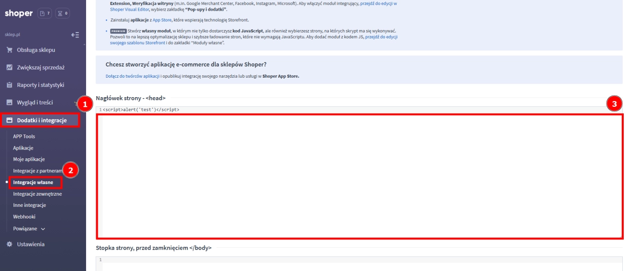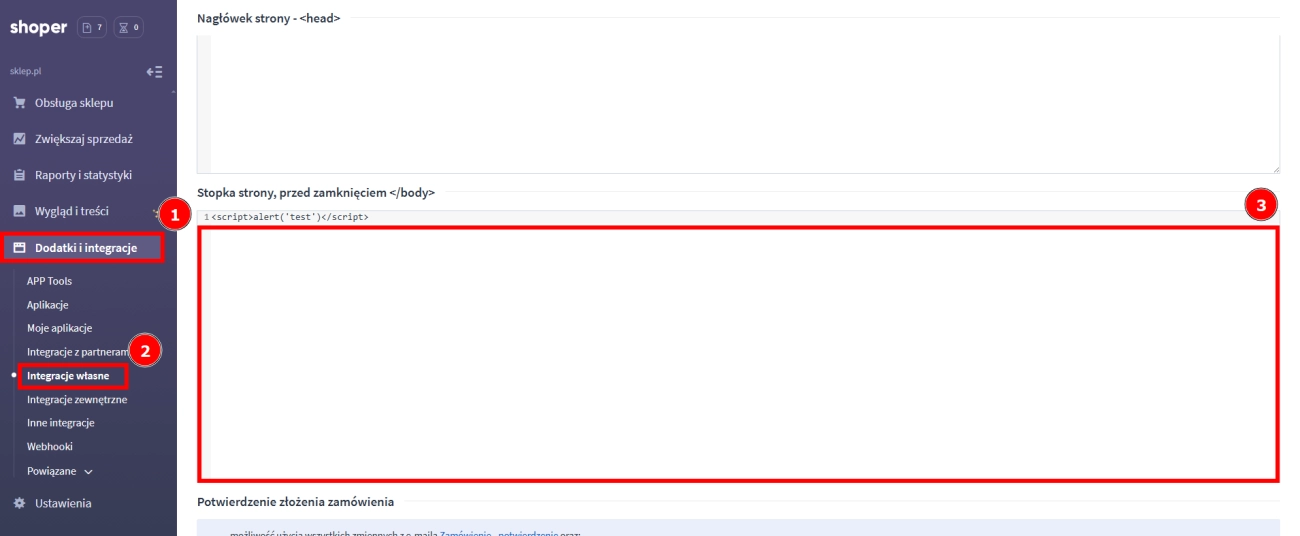 - W sekcji Nagłówek strony - <head> w edytorze dodaj zawartość pliku (3).